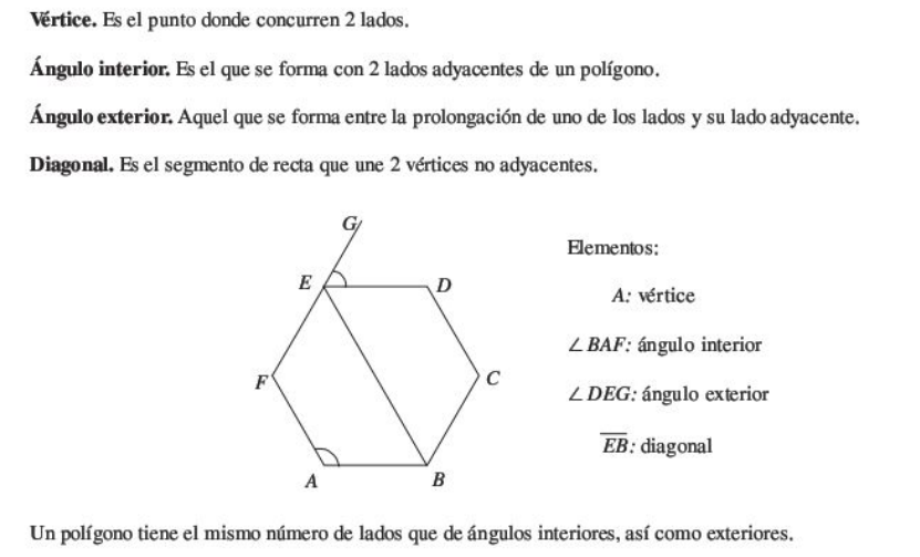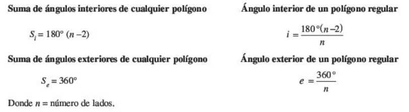 - Ángulo interior: formado con dos lados adyacentes del polígono